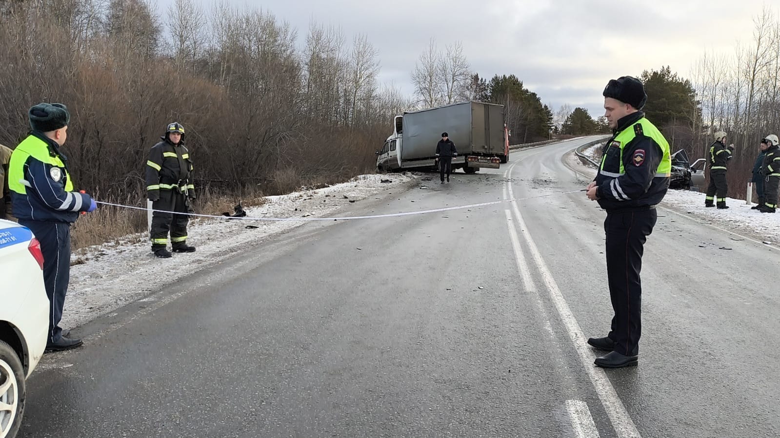 Сотрудники Артемовской Госавтоинспекции разбираются в обстоятельствах ДТП с участием легкового и грузового автомобилей.