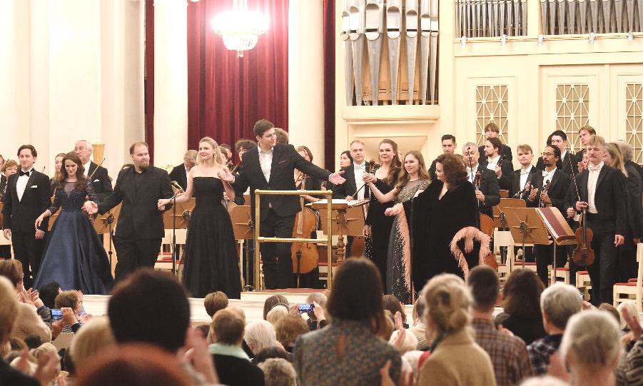 В Большом зале Филармонии выступил оркестр двух столиц, объединивший два коллектива: петербургский заслуженный коллектив России Академический симфонический и государственный симфонический оркестр «Новая Россия». Дирижировал Юрий Башмет — художественный руководитель и главный дирижер последнего. Концерт прошел в рамках фестиваля «Чайковский. Перезагрузка» к 185‑летию со дня рождения композитора, которое отмечают в этом году.