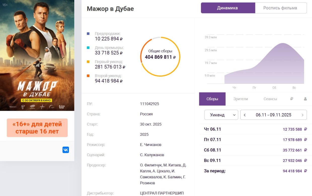 11 ноября сборы фильма «Мажор в Дубае» достигли отметки в 400 млн рублей. На достижение этого результата комедии потребовалась около двух недель — премьера состоялась 30 октября. Лента всё ещё удерживает лидирующие строчки в российском прокате, уступая лишь «Папиным дочкам», «Горынычу» и «Алисе в стране чудес».