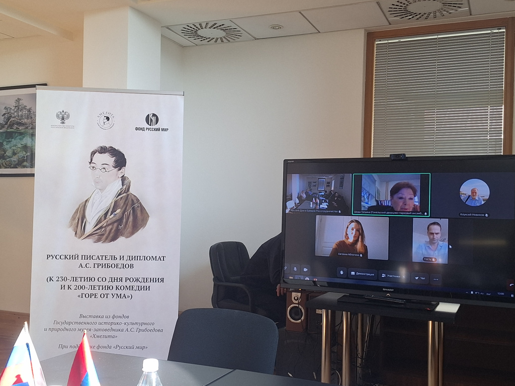 Шестого ноября в Российском центре науки и культуры в Ереване (проспект Маршала Баграмяна, д. 34) состоялось торжественное открытие выставки «Грибоедов – русский писатель и дипломат» из фондов Государственного историко-культурного и природного музея-заповедника А. С. Грибоедова «Хмелита». Были представлены материалы, посвящённые усадьбе Грибоедовых Хмелита (Россия, Вяземский район Смоленской области), в которой работает единственный музей А. С. Грибоедова, характеризующие русского гения как драматурга и дипломата. В частности, демонстрировались копии уникальных документов, хранящихся в архиве Министерства иностранных дел Российской Федерации.