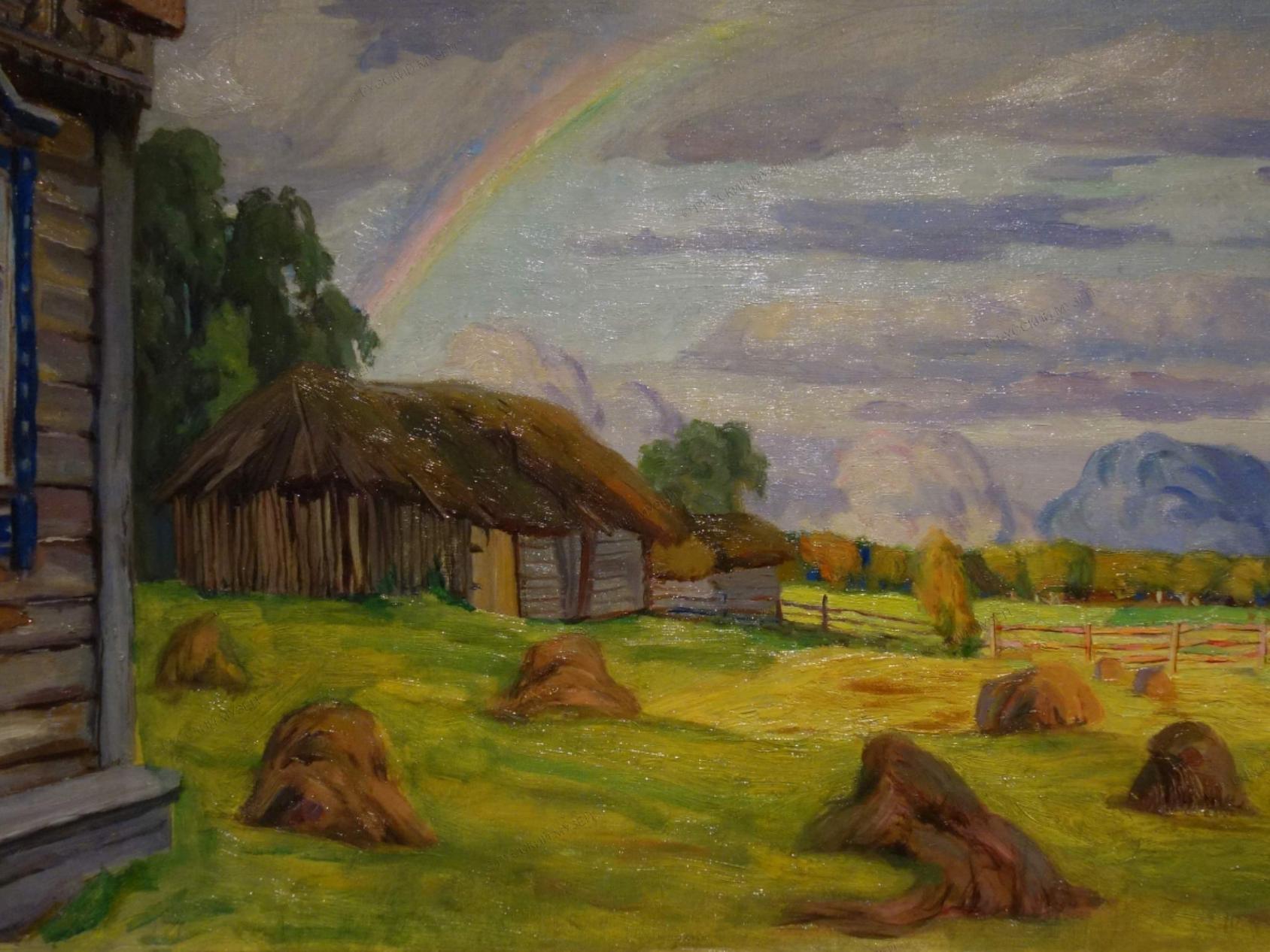 Раздел, посвящённый радугам, наполнен ощущением обновления и чистоты. Среди представленных работ — «После весеннего дождя» (1908) Николая Крымова, «Сельский пейзаж с радугой» (1911–1915) Александра Гауша и «Радуга. Вечерние тени» (1900) Константина Сомова.