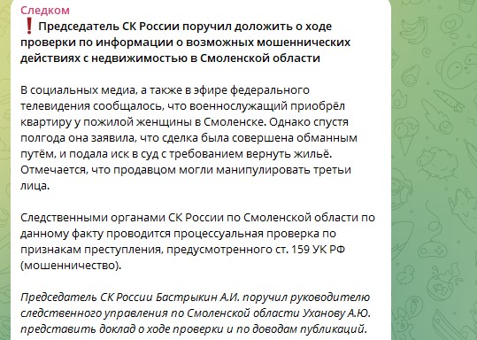 К счастью, в дело снова вмешался Александр Бастрыкин. Скриншот Telegram/"Следком"