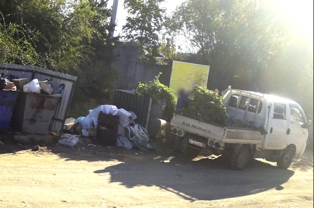 На фотографиях зафиксирован факт сброса отходов. Выяснилось, что это сделал мужчина на автомобиле марки KIA BONGO III.