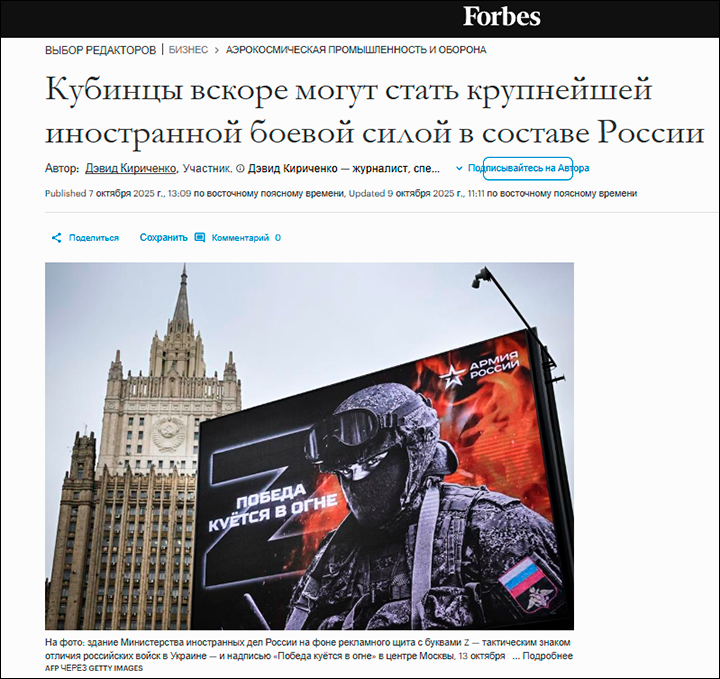 Западные СМИ явно не прельщает перспектива появления на поле боя кубинцев вдобавок к северным корейцам. Скриншот страницы сайта forbes.com. Автоперевод
