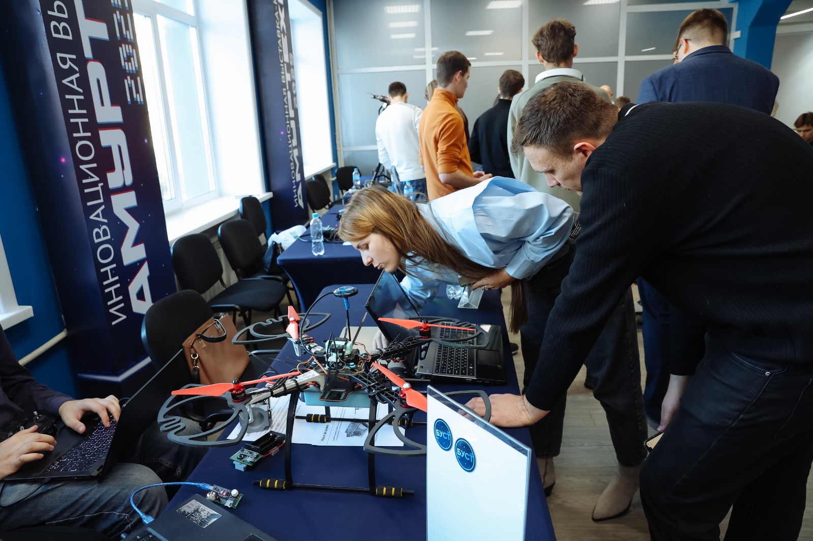 «А вы знаете, что почти треть удобрений на полях аграриев улетают в атмосферу? Выбросы аммиака — это серьезная экономическая и экологическая проблема современного общества», — объясняет студент 4‑го курса Института компьютерныхи информационных наук АмГУ Павел Геращенко. В его руках небольшой прибор, который может помочь решить эту задачу. «Газоанализатор для беспилотного летательного аппарата» стал в этом году лучшим изобретением на главном инновационном мероприятии региона — выставке-конкурсе «АмурТехно». Еще одну награду — «Приз зрительских симпатий» — тоже завоевал проект студентов АмГУ «Автоматизированный робот-манипулятор». Как создавали свои работы студенты-победители, сколько всего проектов представил университет на выставке и какое будущее у таких разработок — в материале «Амурской правды».