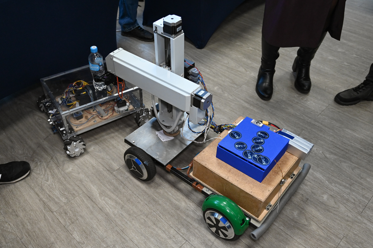 Второй финалист — «Универсальная платформа мобильного робота на Mecanum-колесах». Это платформа с электроприводом и всенаправленными колесами, которая может перемещаться внутри помещений. У нее есть система локальной навигации, дистанционное и автономное управление. В будущем эта разработка станет основой для создания более специализированных роботов: транспортных, сервисных, складских.