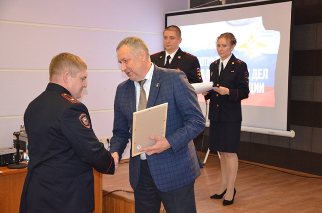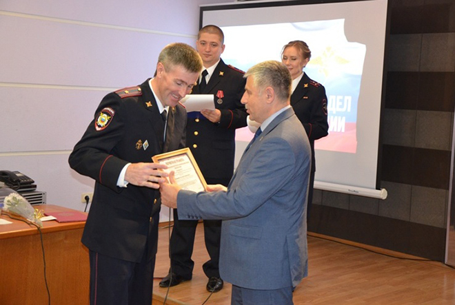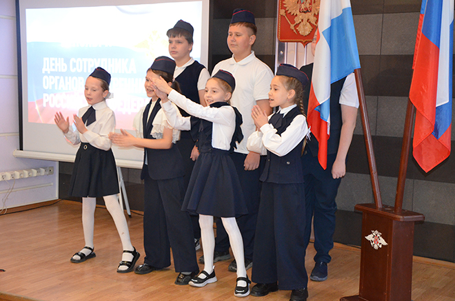 В Кунгуре прошло торжественное мероприятие, посвященное Дню сотрудника органов внутренних дел В Кунгуре актовом зале межмуниципального отдела МВД России «Кунгурский» прошло торжественное мероприятие, посвященное Дню сотрудника органов внутренних дел. В мероприятии приняли участие представители органов исполнительной и законодательной власти, руководство и действующие сотрудники полиции, ветераны, а также активная молодежь, участвующая в патриотической деятельности. Ведомственные награды и почетные грамоты вручил коллегам представитель от Главного управления МВД России по Пермскому краю полковник внутренней службы Вадим Немкин. Начальник территориального отдела Вадим Белоглазов поздравил личный состав с профессиональным праздником, поблагодарил за добросовестную и результативную работу. Слова глубокой признательности полковник полиции адресовал ветеранам, кто создавал и укреплял традиции службы, а сейчас активно участвует в ветеранском движении. Вадим Александрович также поздравил членов семей сотрудников, он отметил, что успехи на службе неотъемлемо связаны с поддержкой и пониманием родных людей. Тёплые слова в адрес стражей порядка прозвучали от первого заместителя главы администрацииКунгурского муниципального округа Олега Лихачёва, председателя городской Думы Сергея Крохалева и депутата Законодательного Собрания Пермского края Алексея Золотарёва. Председатель общественного совета Владимир Власов подчеркнул особую значимость работы полицейских и вклад стражей порядка в обеспечение безопасности округа. Он также отметил возросший интерес молодёжи к службе в правоохранительных органах. Всё больше молодых людей хотят служить Родине и защищать закон. Приятным сюрпризом для полицейских стало творческое выступление школьников из класса «Юные друзья полиции» школы № 18. Пресс-служба межмуниципального отдела |