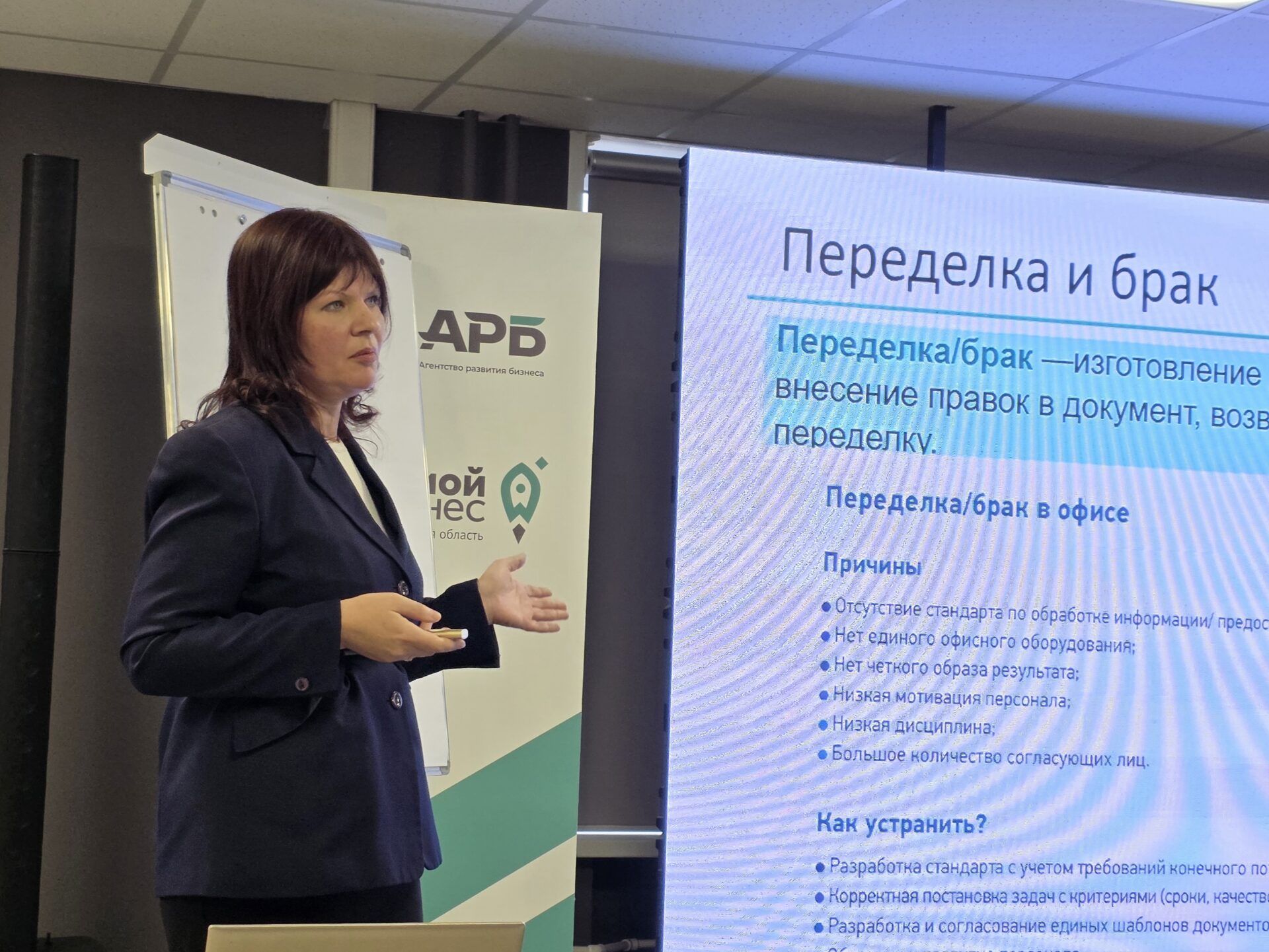 Очередное обучение представителей соцсферы бережливым инструментам прошло 12 ноября на базе АРБ. 65 сотрудников образовательных организаций, спортшкол, библиотек, комплексных центров соцобслуживания населения научились анализировать офисные процессы, находить потери и разрабатывать меры по их устранению. Многие из присутствующих уже знакомы с бережливыми инструментами и успешно применяют их в своей работе.