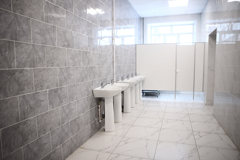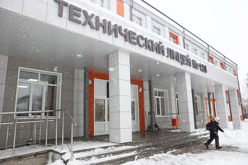 «Очень изменился первый этаж: у нас здесь были на полу доски. А сейчас — керамогранит. Ещё добавились туалеты, что очень важно. В начальной школе туалет был только на первом этаже, теперь на каждом этаже есть туалетные комнаты для мальчиков и для девочек. Фасадная часть поменялась полностью», — перечислила директор технического лицея №128 Ольга Могулёва.