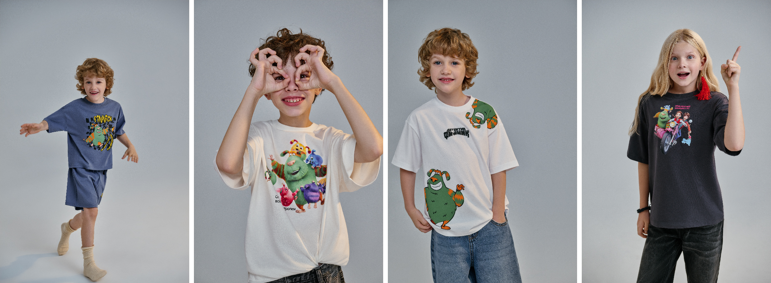 В коллекцию вошли футболки, толстовки, брюки и пижамы из 100% хлопка. Модели представлены для детей от 3 до 12 лет и выполнены в базовых цветах с фирменными принтами Финника и его друзей.
