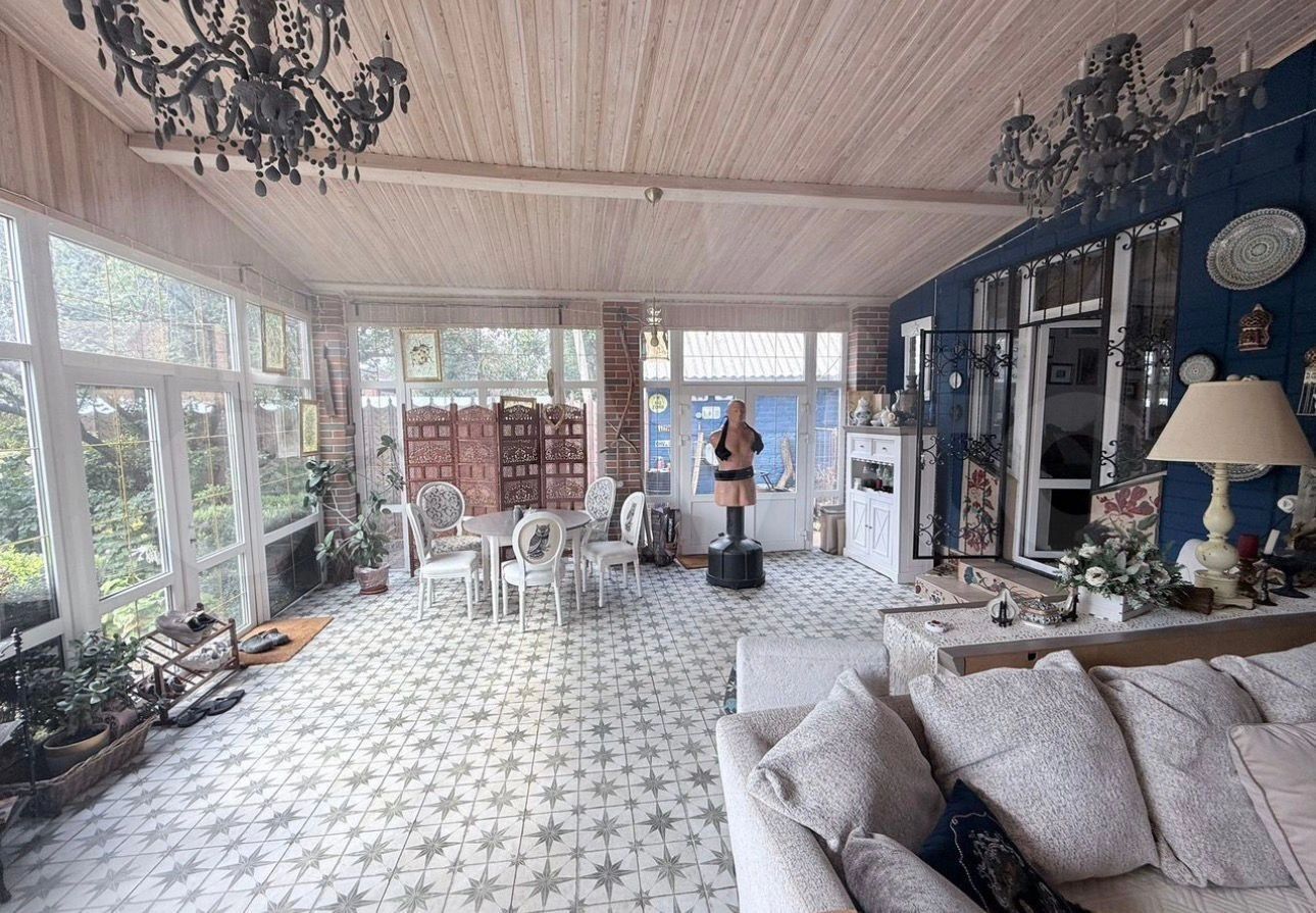 Собственник также опубликовал снимки дома и двора, на которых также можно заметить гараж и пристройку с выходом в сад. Однако сам участок, судя по фотографиям, потребует дополнительного ухода. Стоимость дома — 150 миллионов рублей.