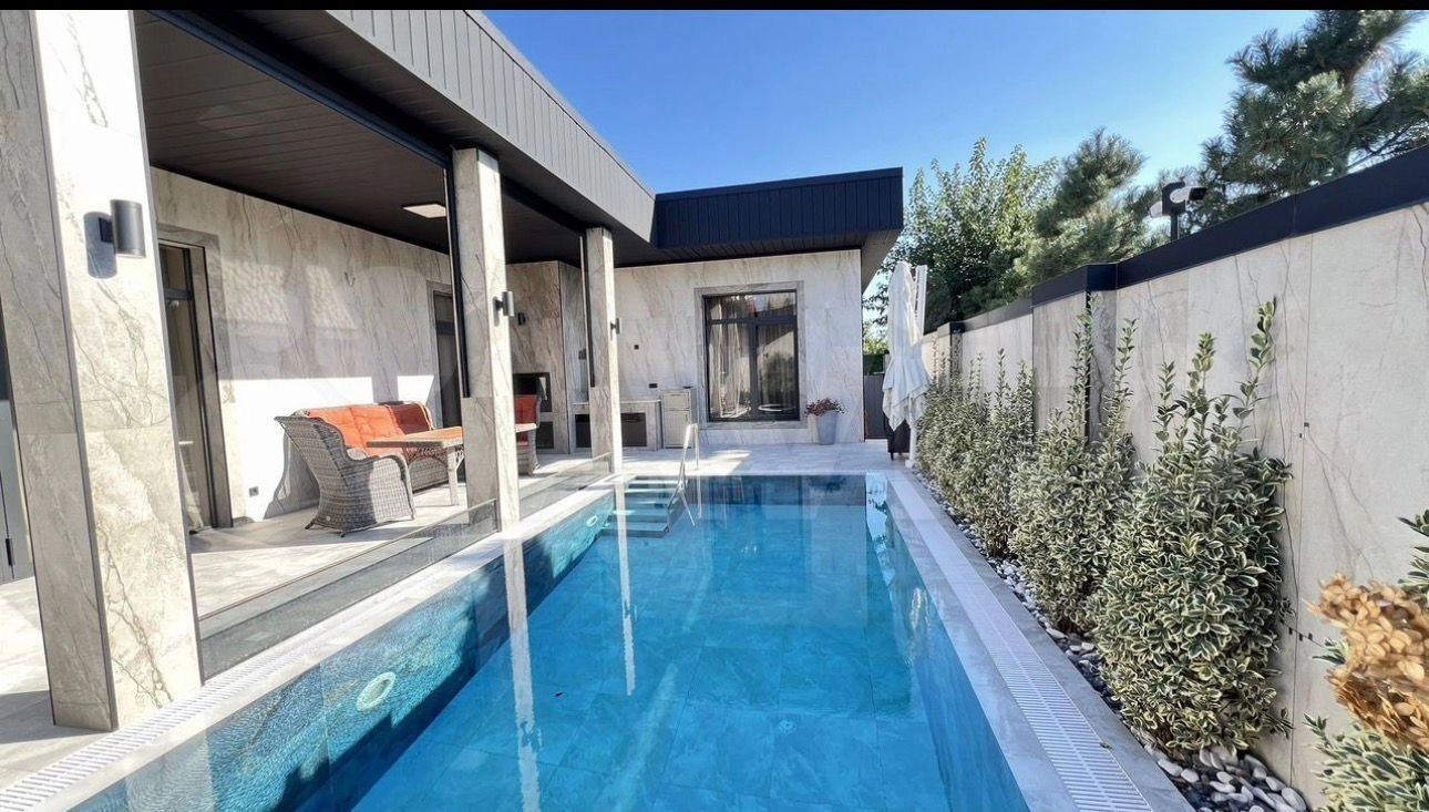 «Есть все! 3 большиe спальни, большая кухня-гостиная с выходом на террасу, 4 гардеробныe, два сан узлa, хоз блок, подвал. Гараж 7/7 метров встроен в дом с отдельным входом и тамбуром. Бассейн переливной с подогревом и полностью автоматический. Зона барбекю», — сказано в объявлении.