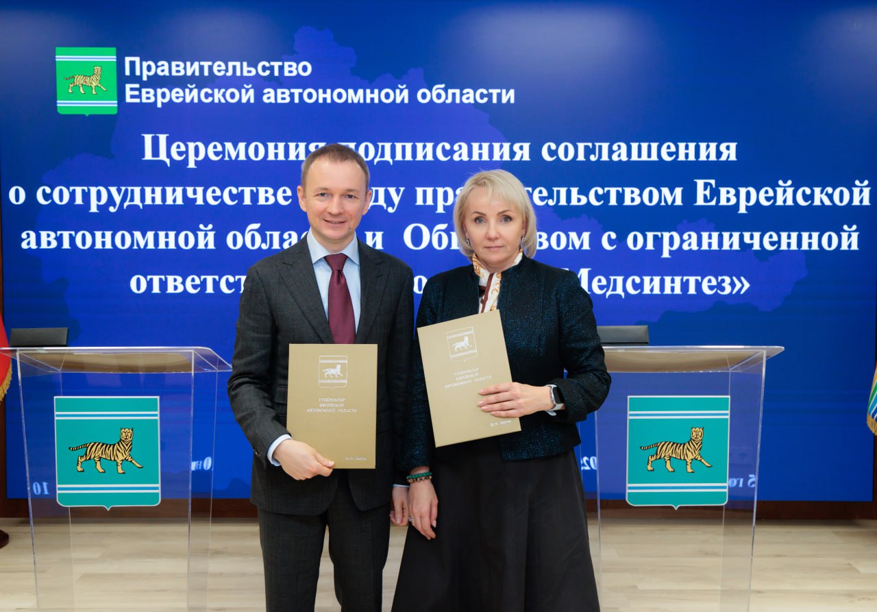 Губернатор ЕАО Мария Костюк подписала два стратегических соглашения о сотрудничестве с председателем совета директоров «ООО «Завод Медсинтез», председателем наблюдательного совета НП «Уральский биомедицинский кластер» Александром Петровым. В области будет реализован проект по производству лекарств на основе четырех новейших технологических платформ, сообщает корр. РИА Биробиджан со ссылкой на Telegram-канал Марии Костюк.