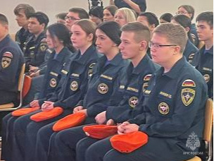 В знак принятия в кадетское братство, каждому новоиспеченному кадету были вручены символы их будущей профессии – памятные петлицы с изображением "Звезды надежды и спасения".
