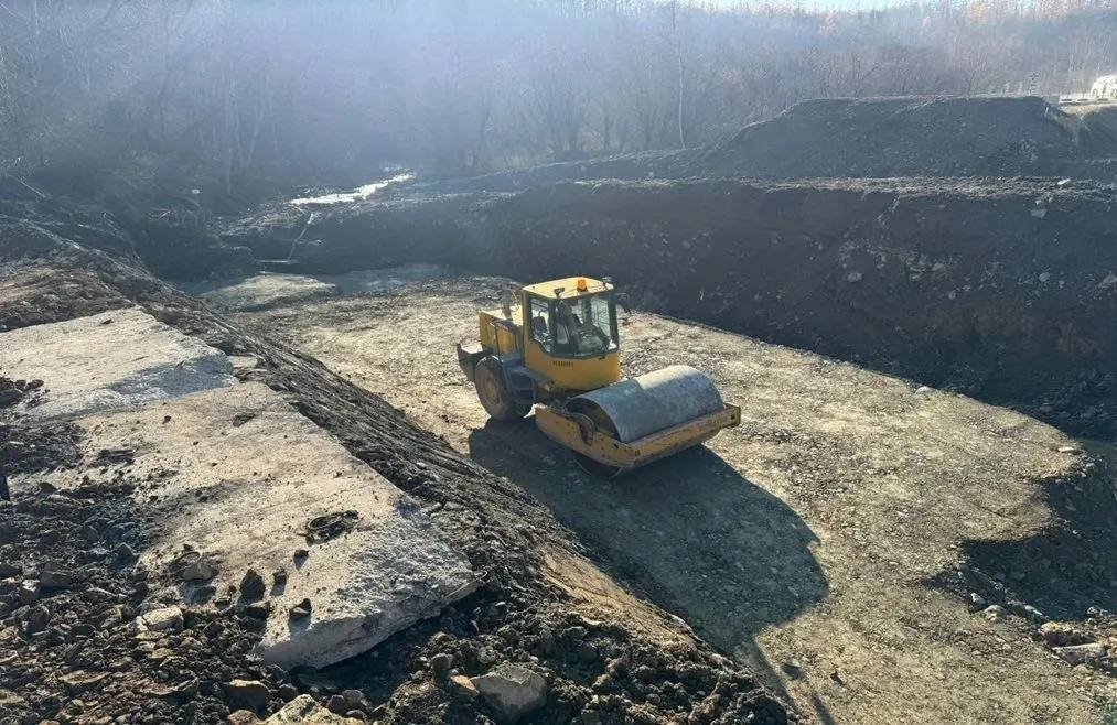"На месте старого моста выкопан котлован, основание под железобетонную трубу отсыпано скальным грунтом. Также устроено цементогрунтовое основание под откосные стены на входе и выходе трубы, выставлена опалубка для устройства монолитного фундамента под оголовки. Старый мост разобран, конструкции вывезены на полигон ТБО. Работы на объекте нацпроекта ведутся с опережением графика", — рассказал руководитель ГКУ "Управление Сахалинавтодор" Вадим Думанский.