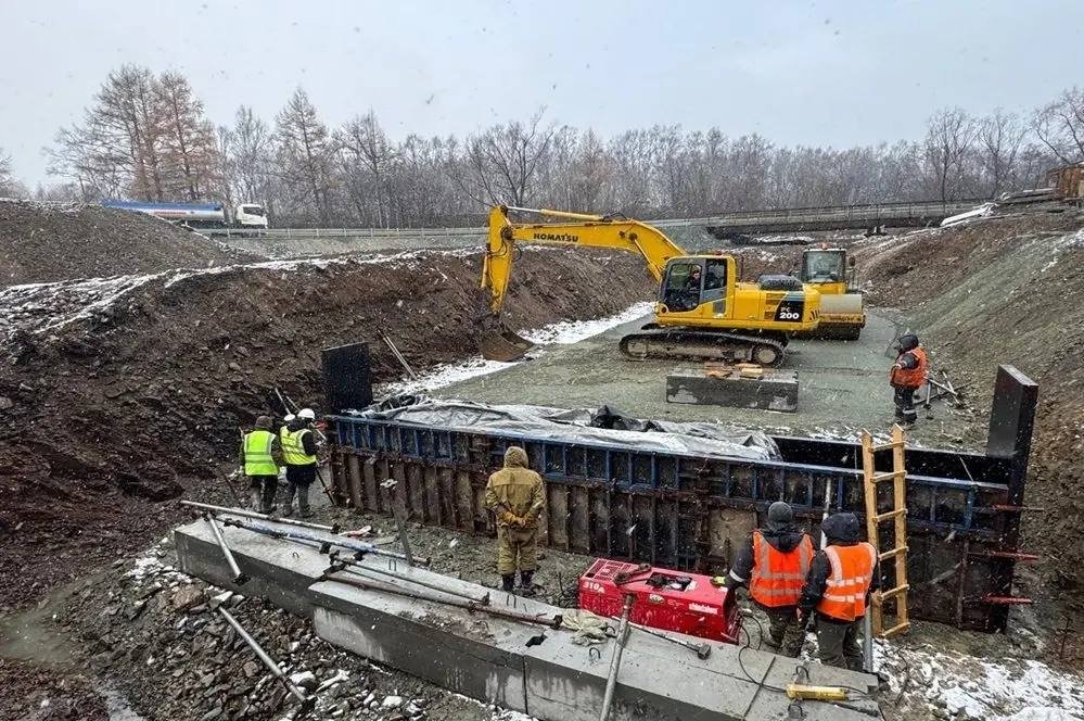 Продолжается капремонт сооружения на участке трассы "Лиственничное – Охотское" (ФОТО)
