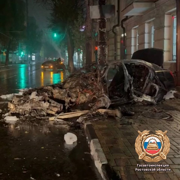 Дорогая иномарка Mercedes-Benz S 500 сегодня ночью сгорела после ДТП в Ростове. Авария произошла около 00:35 на перекрестке улиц Советской и Верхненольной. За рулем премиального авто был водитель 1993 года рождения.