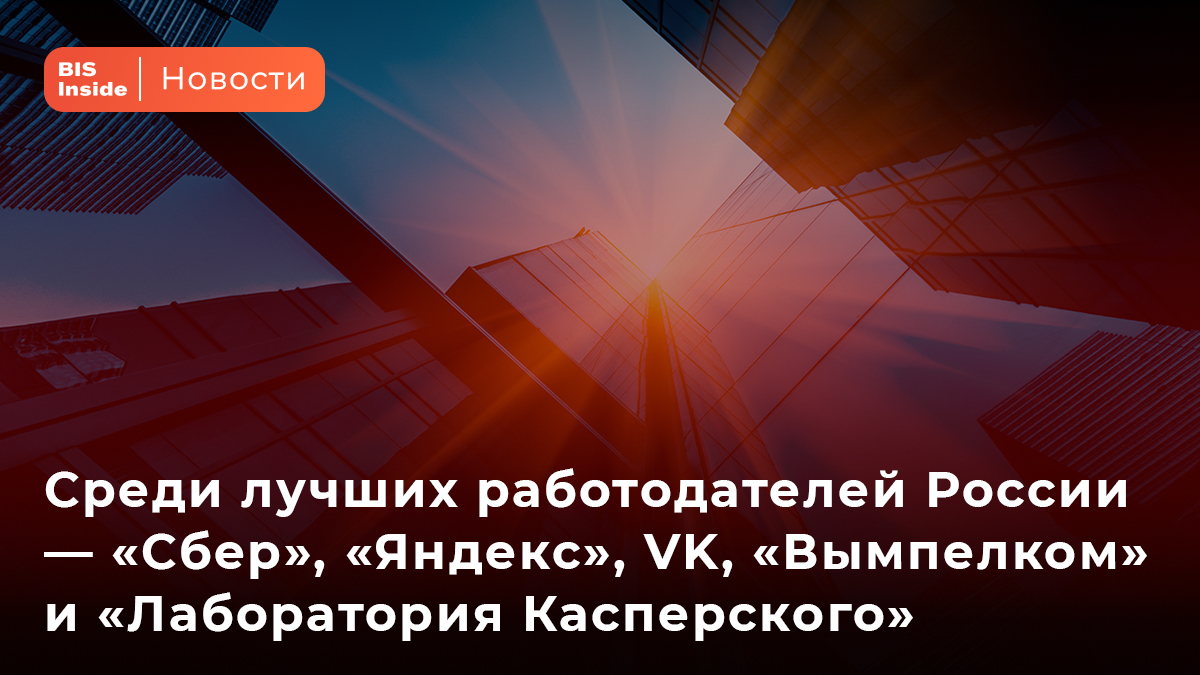 Среди лучших работодателей России — «Сбер», «Яндекс», VK, «Вымпелком» и «Лаборатория Касперского»