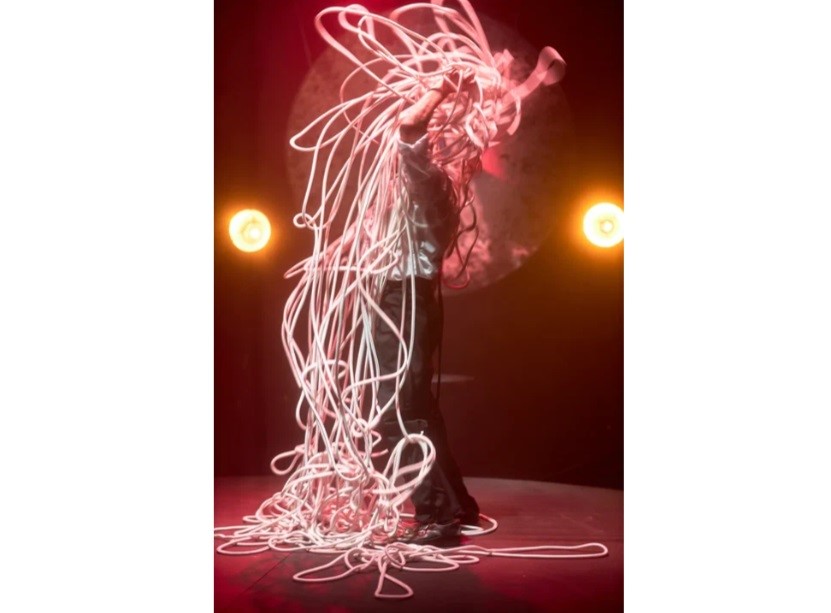 Главным же реквизитом является очень длинная веревка, изображающая чаще всего леску, на которую попалась гигантская рыба. Но в зависимости от необходимости та же веревка превращается в бейсбольную биту, в сети, в водоросли, да во все, что угодно, а иногда и в веревку, за которую кукольник дергает марионетку.