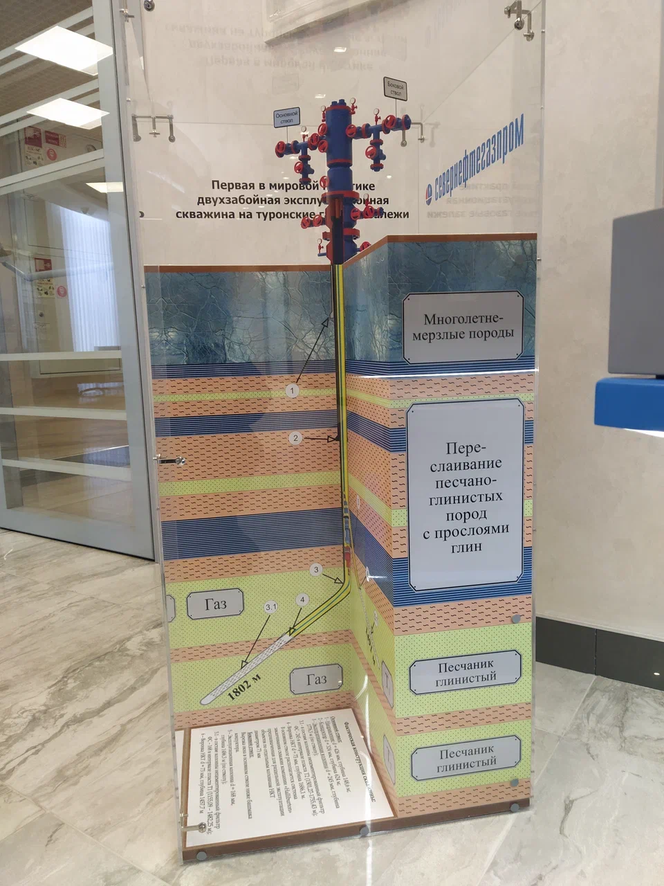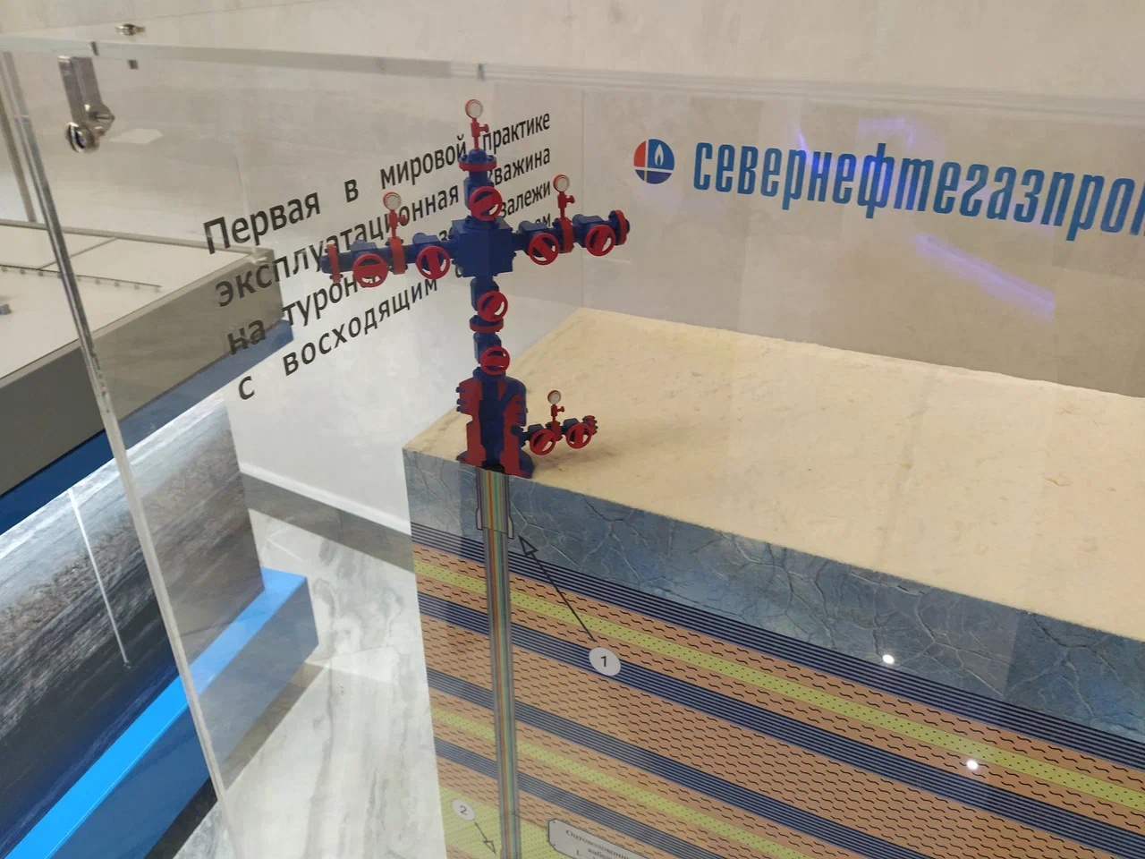 Экспозиция в офисе «Севернефтегазпром», демонстрирующая сложность разработки Южно-Русского месторождения