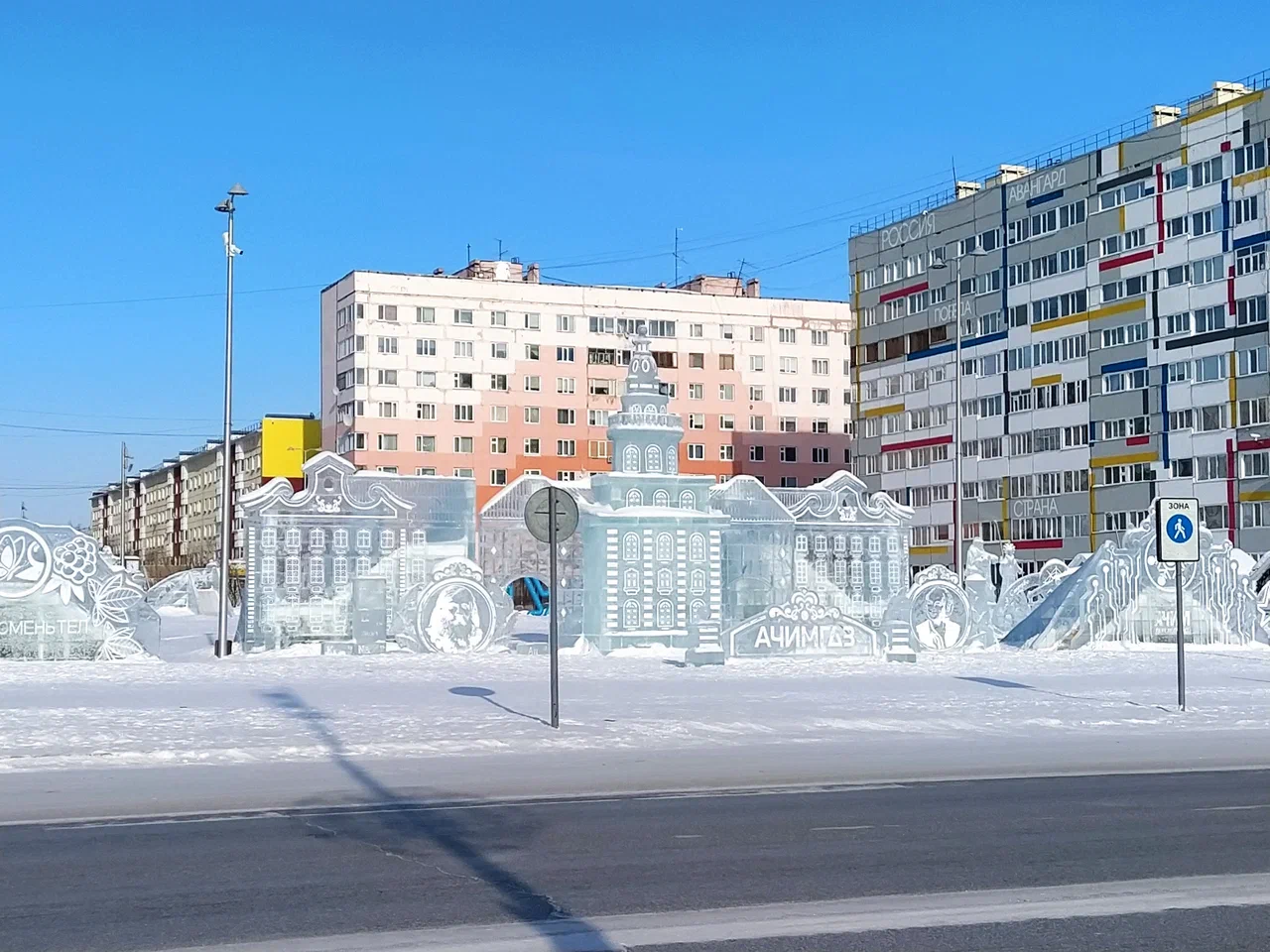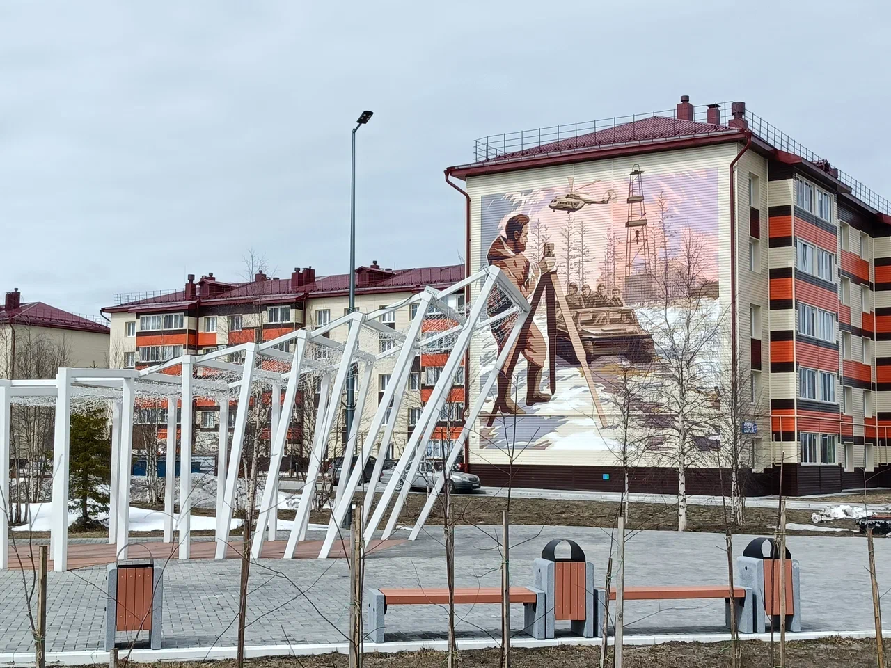 Художественное оформление территории перед офисом «Севернефтегазпром» в центре Нового Уренгоя