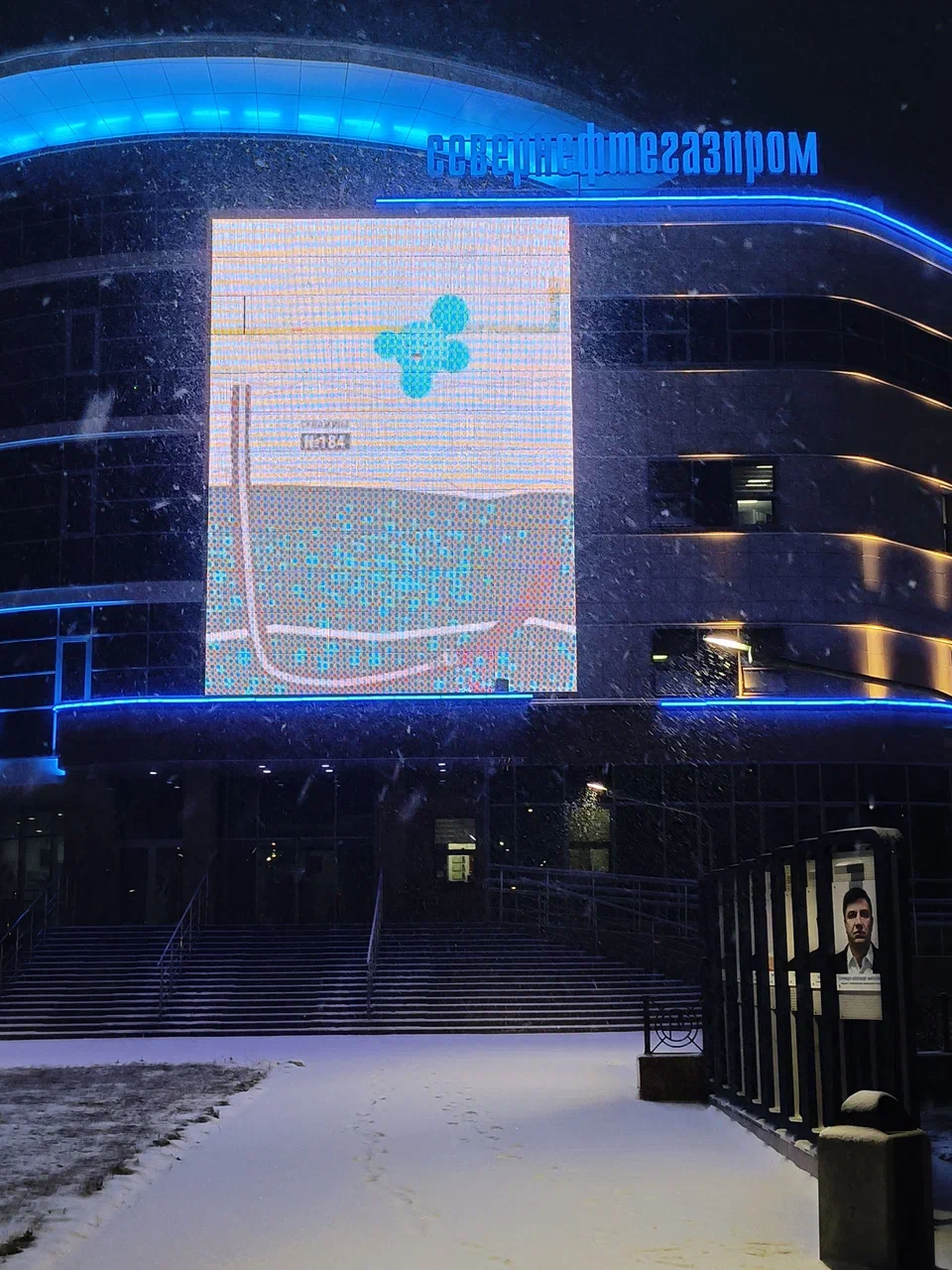 Особенности технологии демонстрируются в ролике на экране на фасаде компании