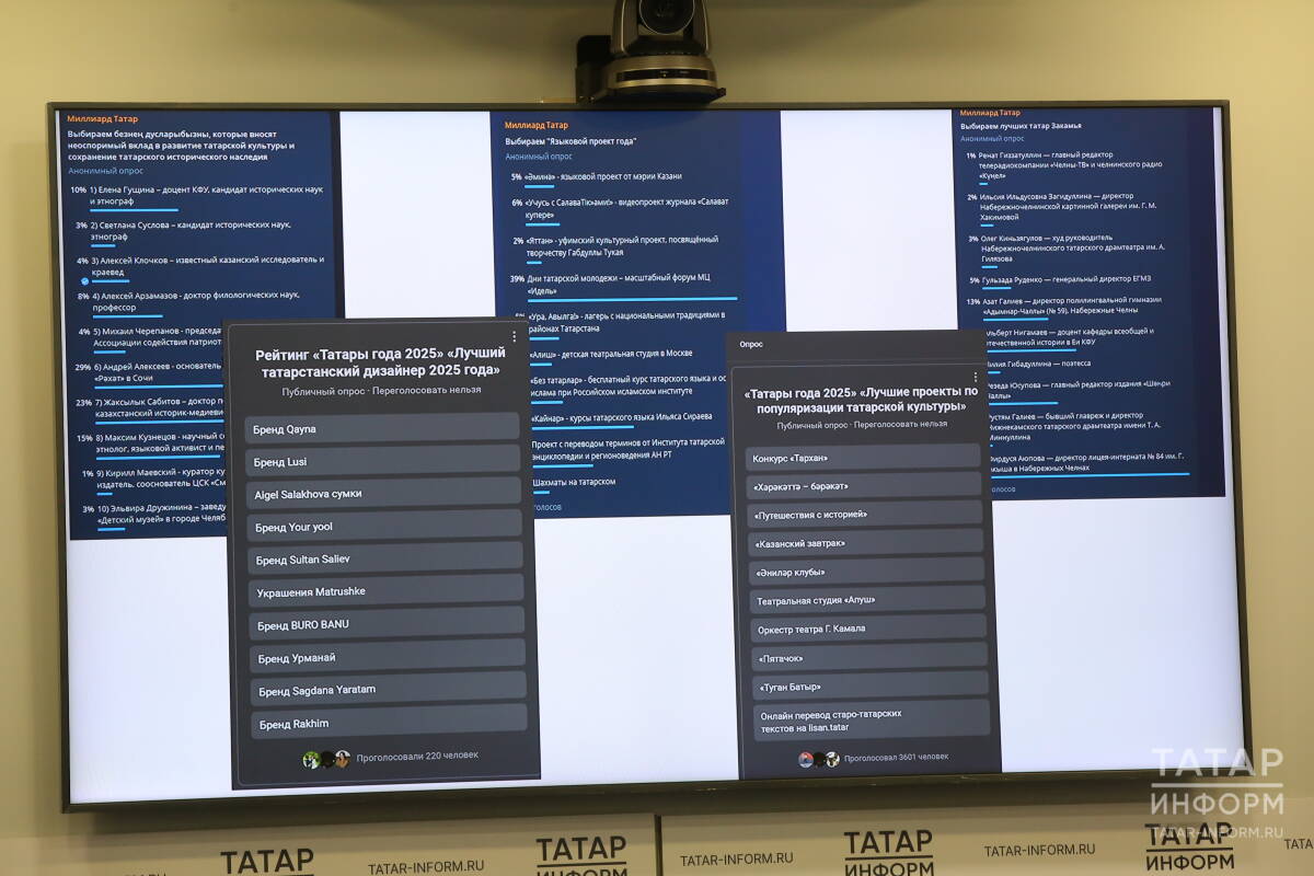 Церемония награждения пройдет традиционно в Присутственных местах Казанского Кремля 3 декабря. Тогда назовут имена обладателей главного приза – звания «Татарин/татарка года – 2025» и символа премии – пайцзы (драгоценная бирка, которой ханы отмечали своих фаворитов).
