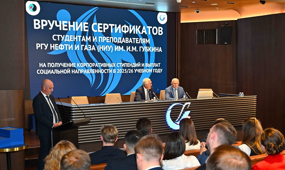 20 октября 2025 года в ПАО «Транснефть» ректор Губкинского университета Виктор Мартынов и вице-президент ПАО «Транснефть» Борис Король вручили студентам и преподавателям РГУ нефти и газа (НИУ) имени И.М. Губкина сертификаты на получение корпоративных стипендий и выплат социальной направленности в 2025/2026 учебном году.