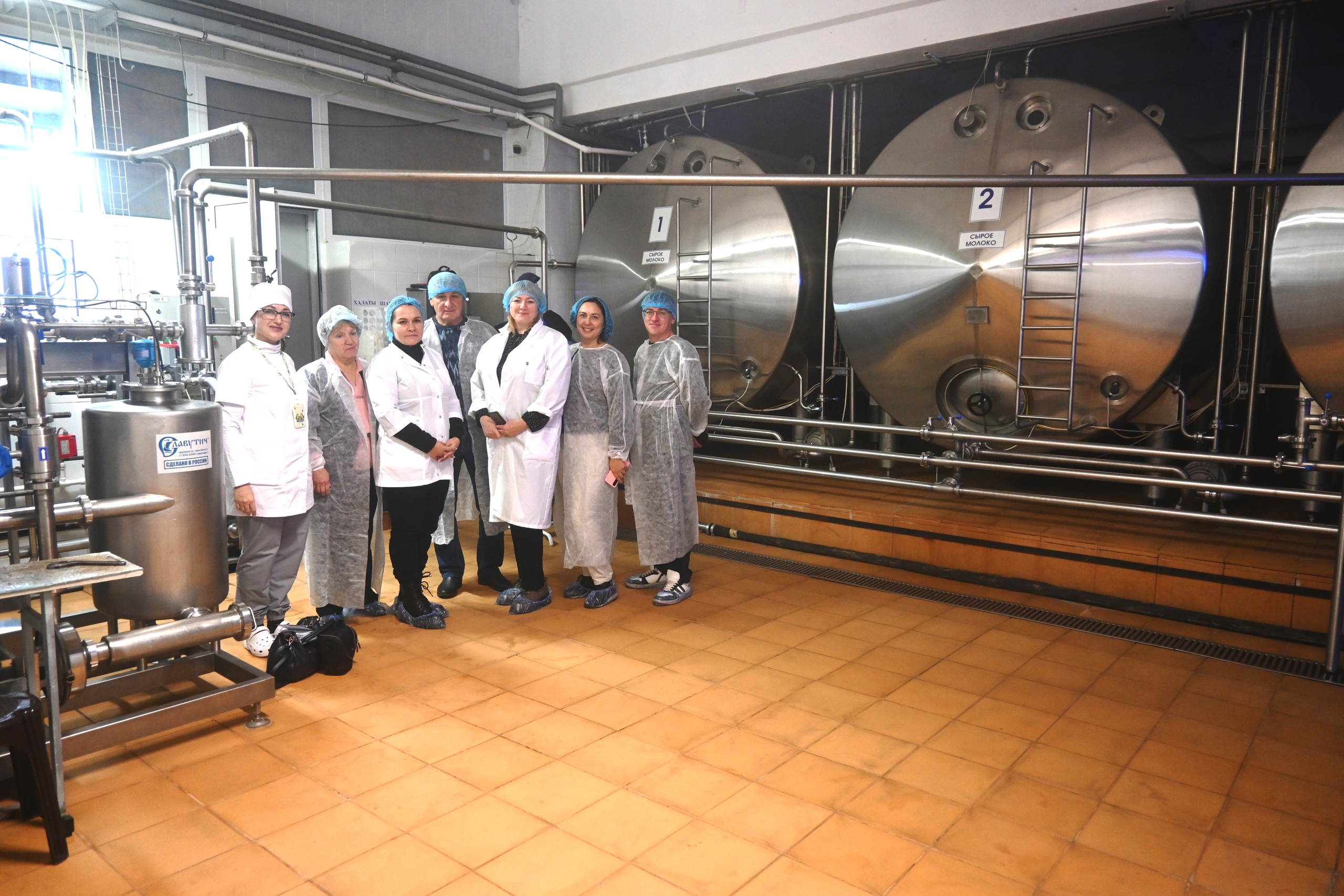 Гостей завода пригласили в приемный цех и лабораторию предприятия, где Кристина Новикова, руководитель этого подразделения, наглядно продемонстрировала, как ведется контроль качества поступающего молока, а затем и самой продукции. Последовавшая дегустация молока, йогуртов и сметаны прошла дружно, отменное качество продукции, судя по фотографии, налицо.
