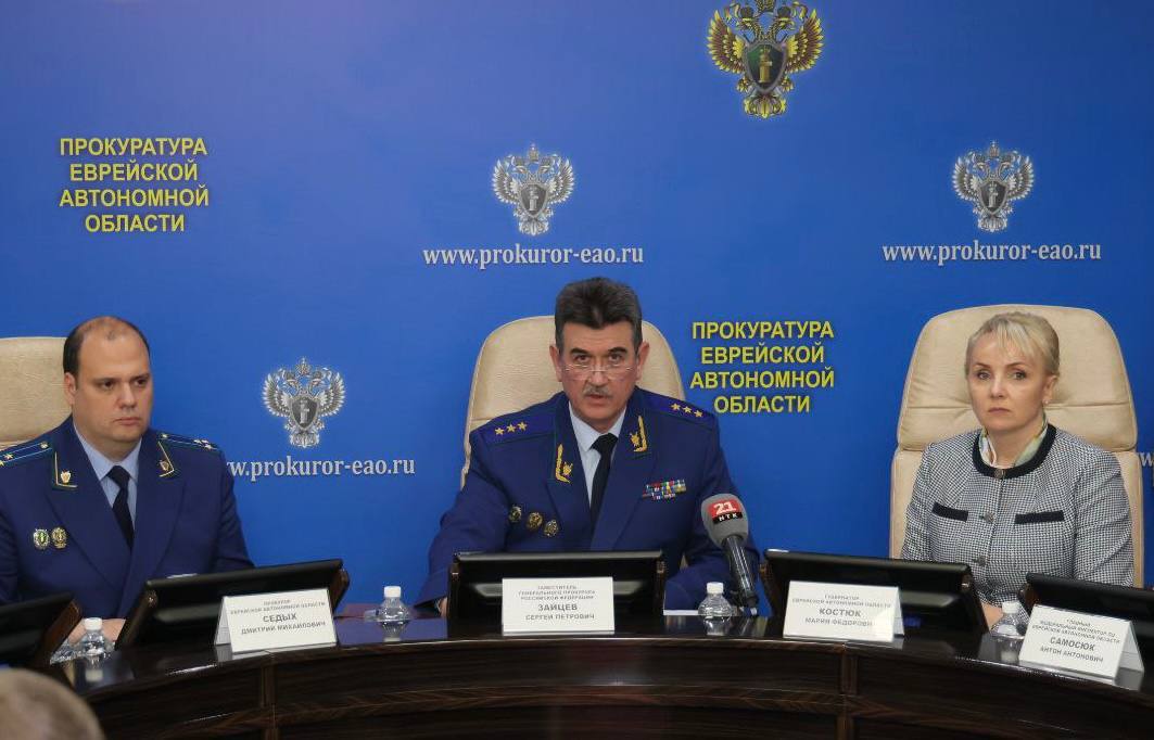 Назначенного Указом президента РФ прокурора ЕАО старшего советника юстиции Дмитрия Седых представил коллективу областной прокуратуры, руководителям органов исполнительной, законодательной, судебной власти, правоохранительных ведомств заместитель Генерального прокурора Российской Федерации Сергей Зайцев, сообщает корр. РИА Биробиджан со ссылкой на Telegram-канал прокуратуры ЕАО.