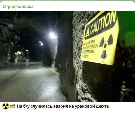 На Украине "по-тихому" объявили режим ЧС из-за аварии на единственной в стране урановой шахте. 11 ноября на шахте "Ингульская" ГП "Восточный горно-обогатительный комбинат" (ГП "ВостГОК") в Днепропетровской области произошла чрезвычайная ситуация – в подземной выработке отработанного блока произошёл прорыв гидроукладочной смеси и затопление горизонта. Отмечается, что двое горняков пропали без вести, пишет канал украинского Сопротивления "Отряд Ковпака":