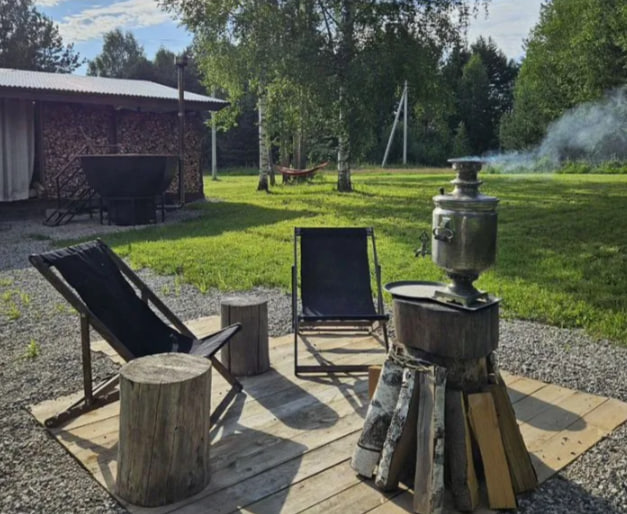 На территории базы есть дом с русской печью и зоной барбекю, банный комплекс, конюшня, гараж и другое.