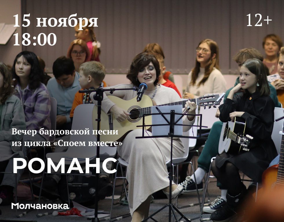 Молчановка приглашает на творческую встречу клуба любителей бардовской песни из цикла «Споем вместе». Тема очередной встречи – «Романс». Вместе со студией «Ключ», кружком гитарной песни ЦДТ «Восход» и представителями Иркутского клуба самодеятельной песни гости вспомнят старинные русские романсы и полюбившиеся многим музыкальные произведения из популярных советских фильмов.