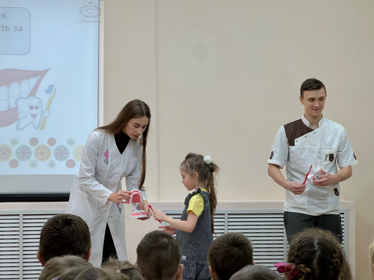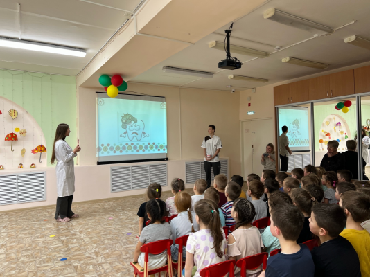 Активисты в игровой форме рассказали о важности соблюдения правил гигиены и обучили воспитанников детского сада уходу за полостью рта. В ходе занятия ребята отработали навыки правильной чистки зубов на диагностических моделях.