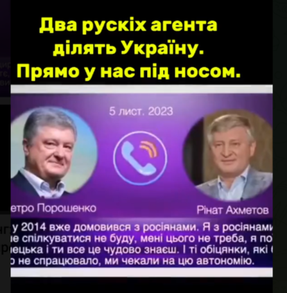 К сожалению, это не Ринат и не Петя. Голоса не похожи. Но дело даже не в голосах - манера разговора не их. Так ни Порошенко*, ни Ахметов не говорят. Такие слова и словосочетания не используют. К тому же оба очень осторожные: никогда бы такое по телефону не обсуждали. Оба сейчас в Киеве, и тогда (5 ноября 2023 года) были в Киеве - подъехали бы и поговорили лично. Порошенко* в то время сидел ниже травы. Какой заговор? Он тогда и слова дурного про Зеленского не говорил. Ещё и Залужного сюда приплели. Но Юра Подоляка, по сути, прав: раз такое "вбрасывают", значит, хотят переключить внимание,