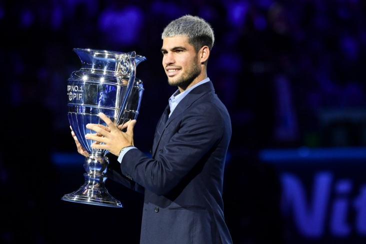 Шестикратный чемпион турниров «Большого шлема» испанский теннисист Карлос Алькарас получил кубок за окончание сезона-2025 в статусе первой ракетки мира. Торжественное вручение награды прошло на Итоговом чемпионате ATP — 2025 в Турине (Италия).