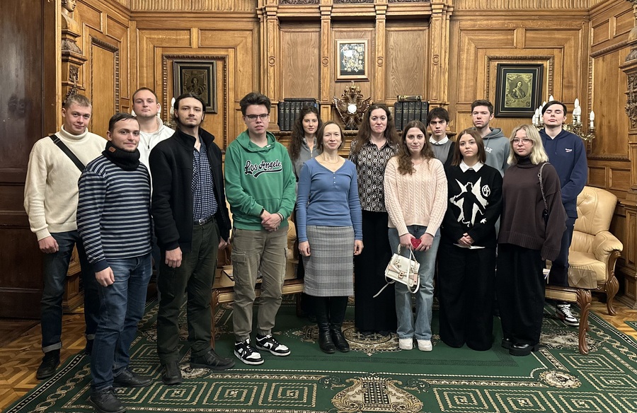 В завершении встречи для учащихся РГПУ им. А.И. Герцена была проведена экскурсия по залам особняка Великой княгини Ольги Александровны Романовой, где с 1988 года располагается СПб ТПП.