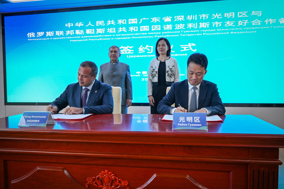 Рустам Минниханов принял участие в церемонии подписания соглашения о сотрудничестве между Иннополисом и китайским районом Гуанмин