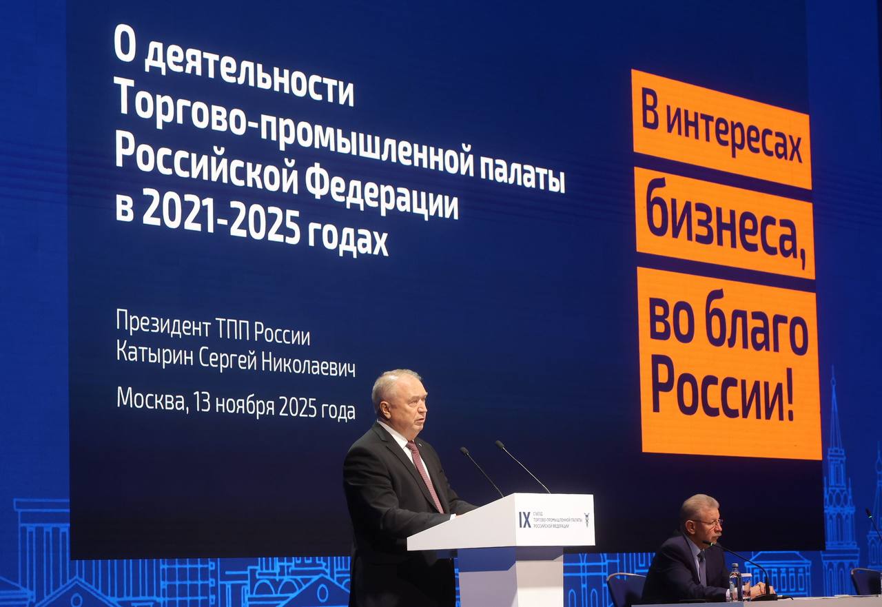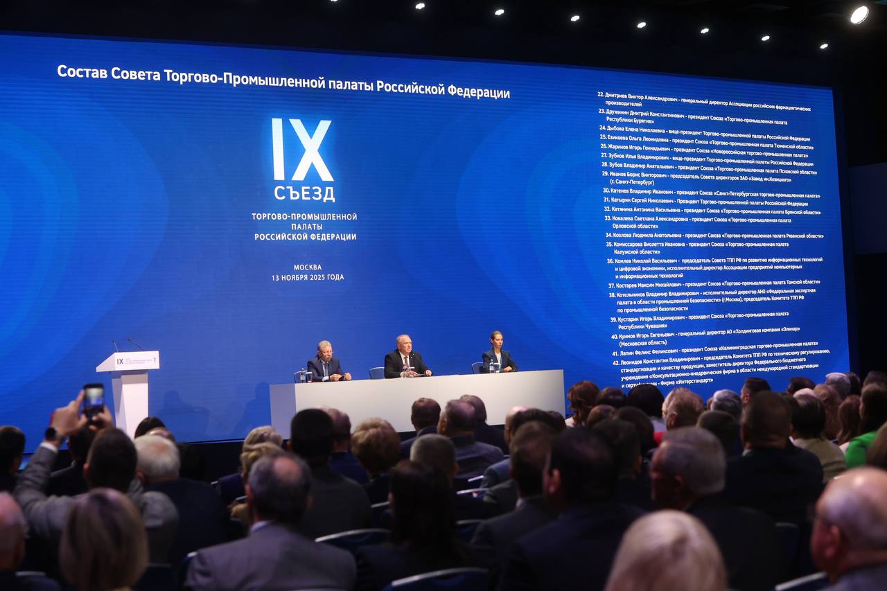 13 ноября 2025 года в Центре международной торговли прошёл IX Съезд Торгово-промышленной палаты России.