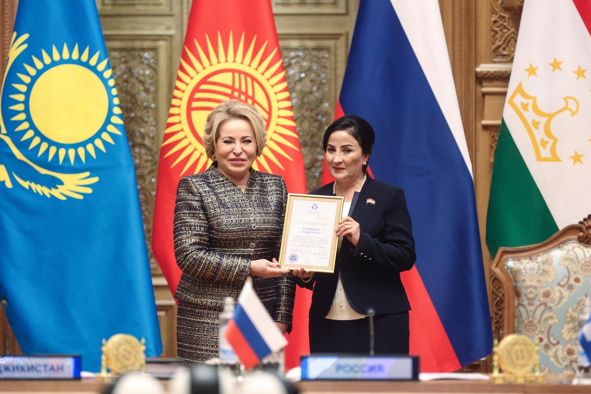 Также были отмечены председатель Комитета Маджлиси милли Маджлиси Оли Республики Таджикистан по социальным вопросам, охране здоровья, науке, образованию, культуре и политике среди молодежи и женщин Мунира Каримзода, кинорежиссер, сценарист, продюсер, заслуженный деятель культуры Кыргызской Республики, председатель Союза кинематографистов Кыргызской Республики Айбек Дайырбеков ируководитель транспортной службы управления эксплуатации Секретариата Совета МПА СНГ Константин Рассадин.