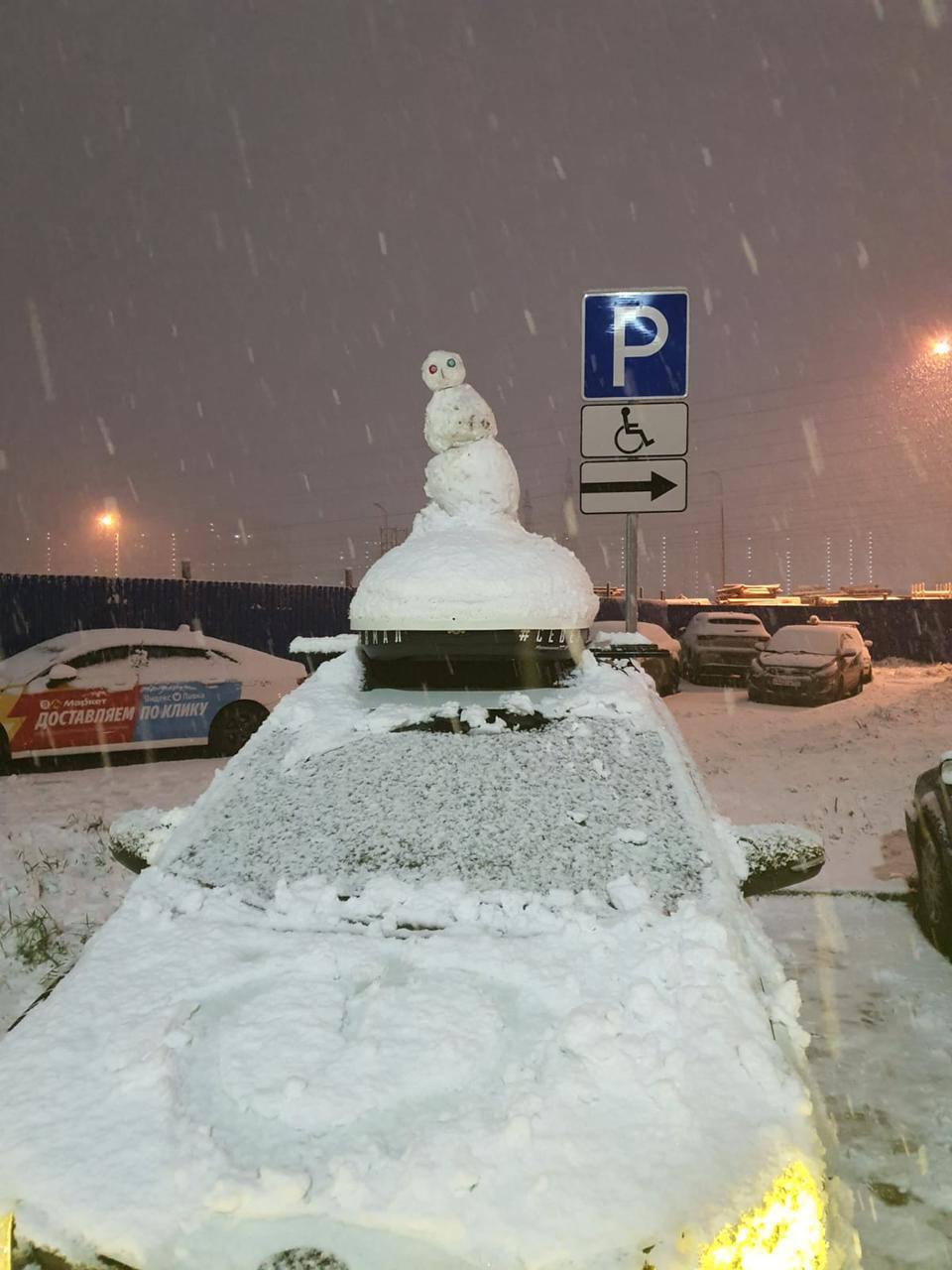 Некоторые жители нашего города не стали терять времени и слепили первого снеговика. Владелец машины даже не стал чистить автомобиль от снега, зато создал на его крыше снежного стража. Снимки появились в Telegram-канале «Петербург с огоньком».