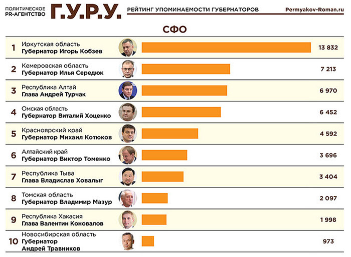 Губернатор Иркутской области Игорь Кобзев по итогам октября 2025 года занял первое место среди губернаторов Сибирского федерального округа в Telegram-рейтинге глав регионов. Об этом сообщает аналитический центр «Г.У.Р.У.». Глава Прибайкалья в октябре собрал 13 832 упоминания в Telegram-каналах.