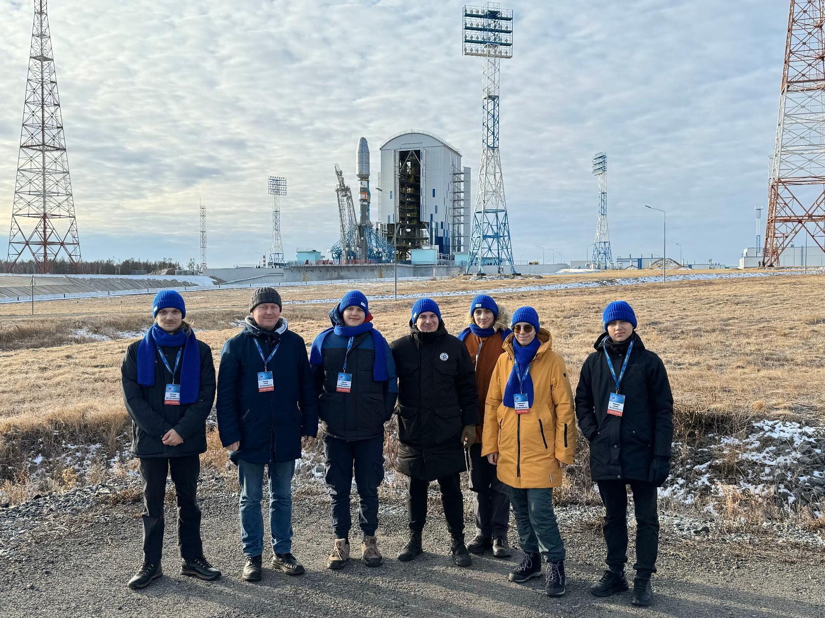 Команда разработчиков первого космического спутника САФУ на космодроме «Восточный». Фото Романа Алешко