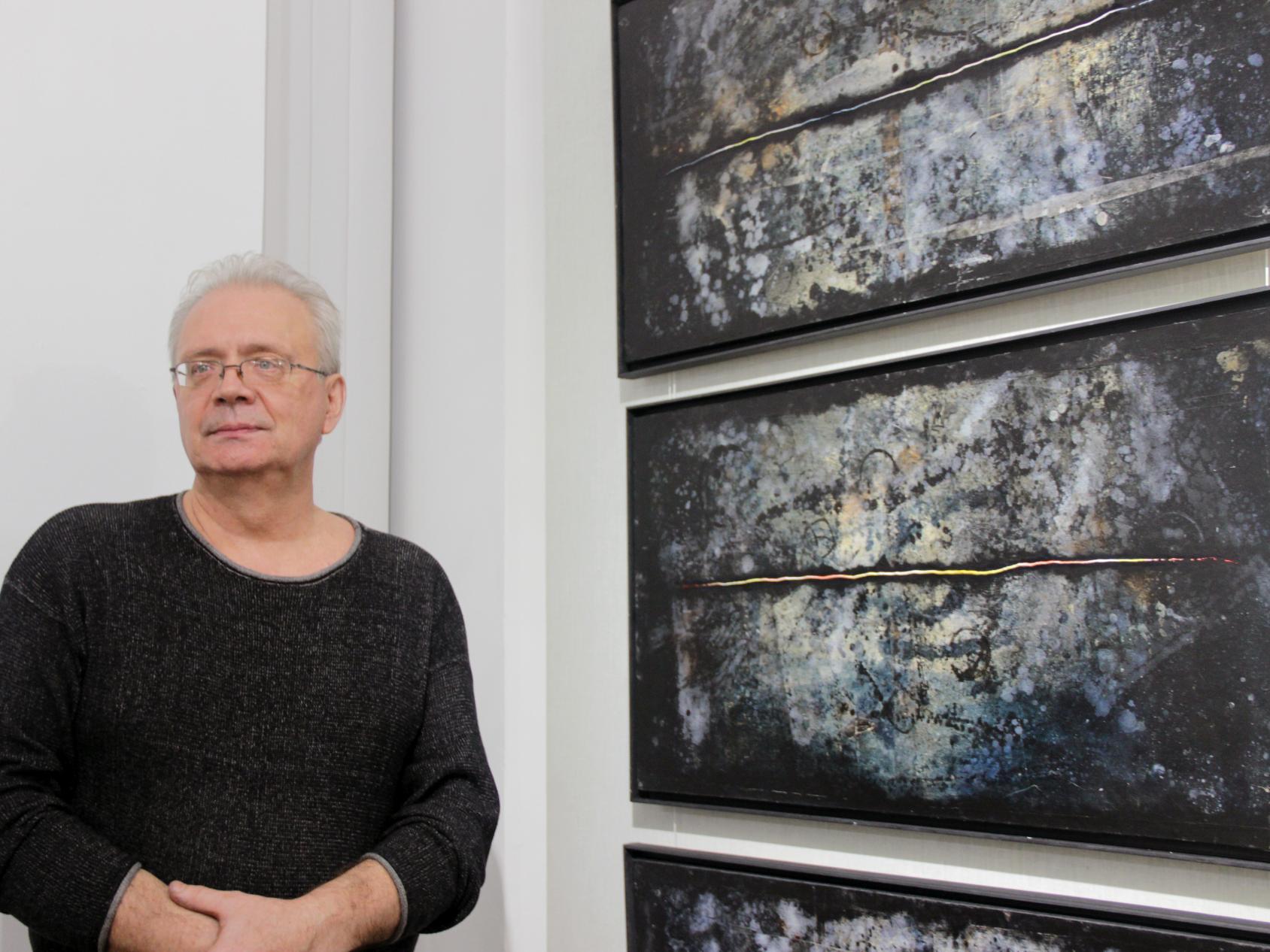 Виктор Воробьёв у триптиха «Отрезок времени»