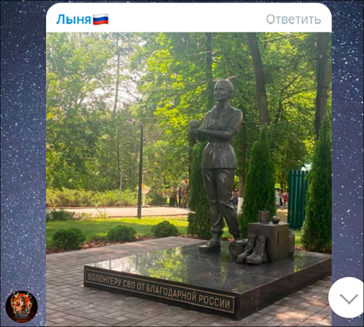Ещё одна говорящая деталь: находясь в должности командующего войсками Южного военного округа, Александр Санчик поддержал установку памятника волонтёрам, погибшим на полях СВО и дорогах, ведущих к ним. Скриншот: тг-канал "Лыня"