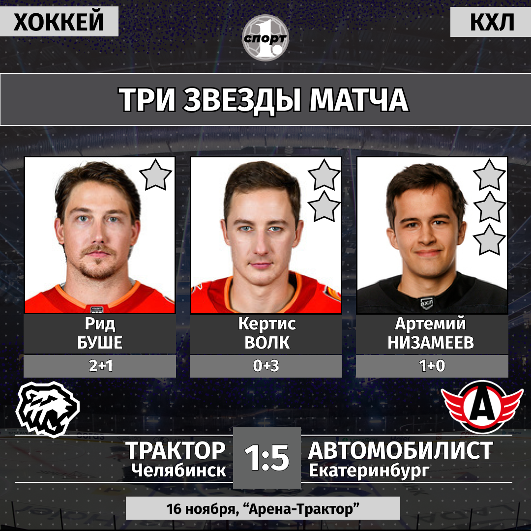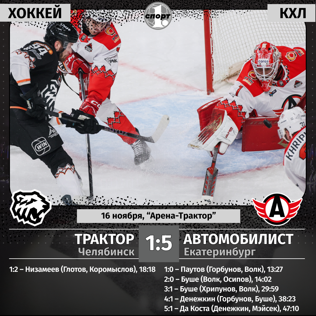 Хоккей. Сезон-2025/2026. Чемпионат КХЛ. 16 ноября. «Трактор» (Челябинск) — «Автомобилист» (Екатеринбург) — 1:5 (1:2, 0:2, 0:1).