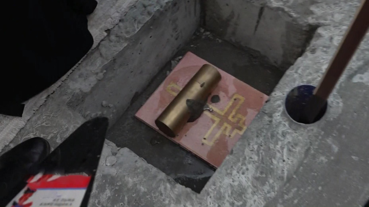 В Грозном в районе имени президента России Владимира Путина заложили капсулу с грамотой и освятили закладной камень нового собора в честь князя Владимира. Кадры показал телеканал "Россия".