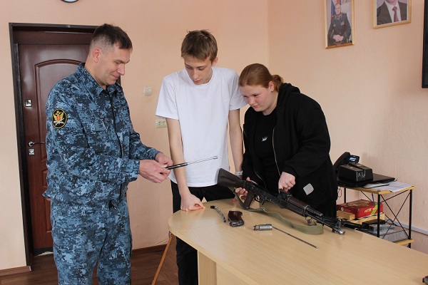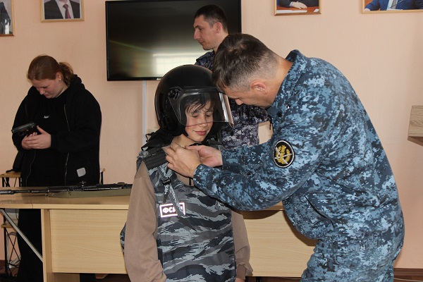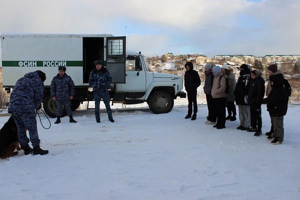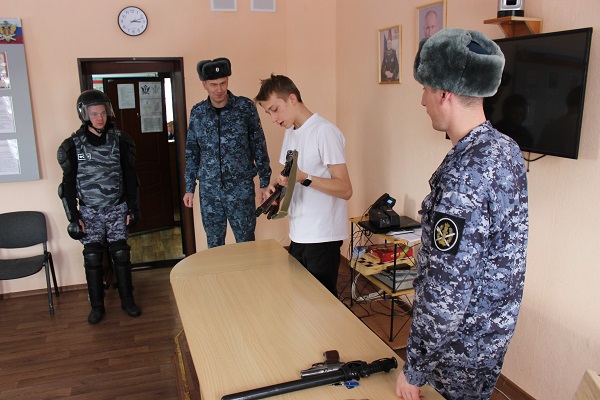 В рамках проведения мероприятий заместитель начальника отдела охраны майор внутренней службы Александр Тарабарин, старший инструктор кинологической группы отдела охраны старшина внутренней службы Константин Наумов, инструктор-кинолог кинологической группы отдела охраны Дмитрий Пахомов показали всю имеющую амуницию (снаряжения), которое выдают сотрудникам казённого учреждения, показали работу инструктора-кинолога со служебной собакой, показ спец.техники.