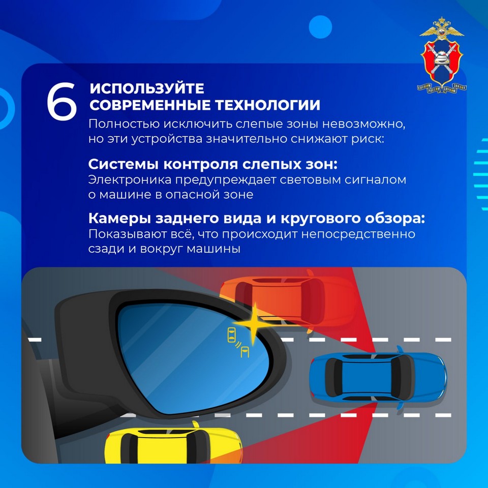 Используйте электронных помощников. Многие современные автомобили оснащены системами мониторинга слепых зон (BSM). Они предупреждают водителя световым сигналом на зеркале или звуком, если в мертвой зоне есть объект. Камеры кругового обзора также значительно упрощают маневрирование.