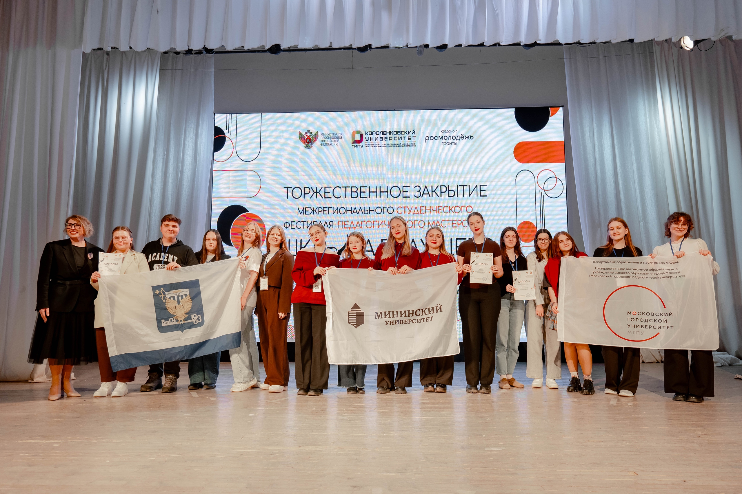 С 13 по 15 ноября команда студентов Педагогического института ВятГУ принимала участие в Межрегиональном студенческом фестивале педагогического мастерства «Школа будущего», посвященного Году защитника Отечества в Российской Федерации. Фестиваль проходил на базе ФГБОУ ВО «Глазовский государственный инженерно-педагогический университет имени В.Г. Короленко»